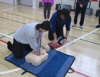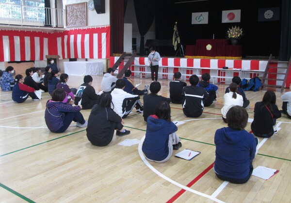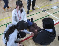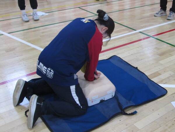 入学式の準備が整った体育館で、エピペンの使い方、救急救命の方法を何度も実際にシュミレーションしながら、全員が実際に体を動かし声を出し、スムーズに動けるように訓練をしました。