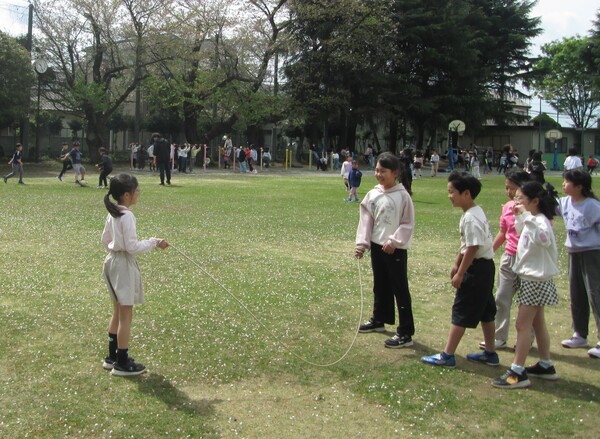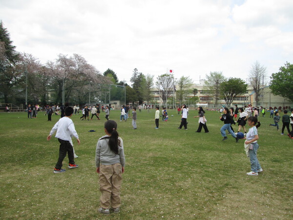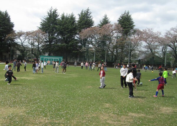 後をついて行ってみると、緑の芝生の上で、縄跳び、ドッジボール、サッカー鬼ごっこ・・
