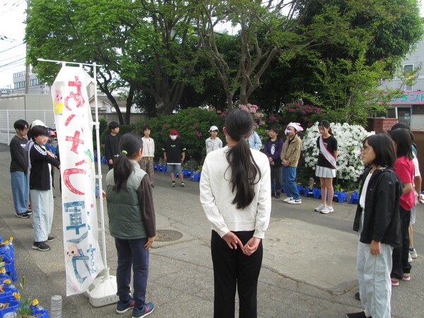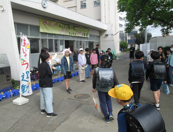 今週は、代表委員の児童が昇降口前に立ち、あいさつ運動をしています。